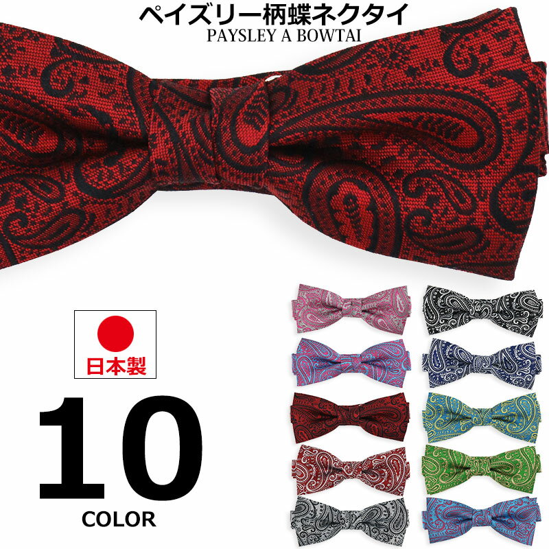 日本製 蝶ネクタイ ペイズリー柄 エスニック 蝶タイ メンズ レディース ブラック レッド 黒 赤 結婚式