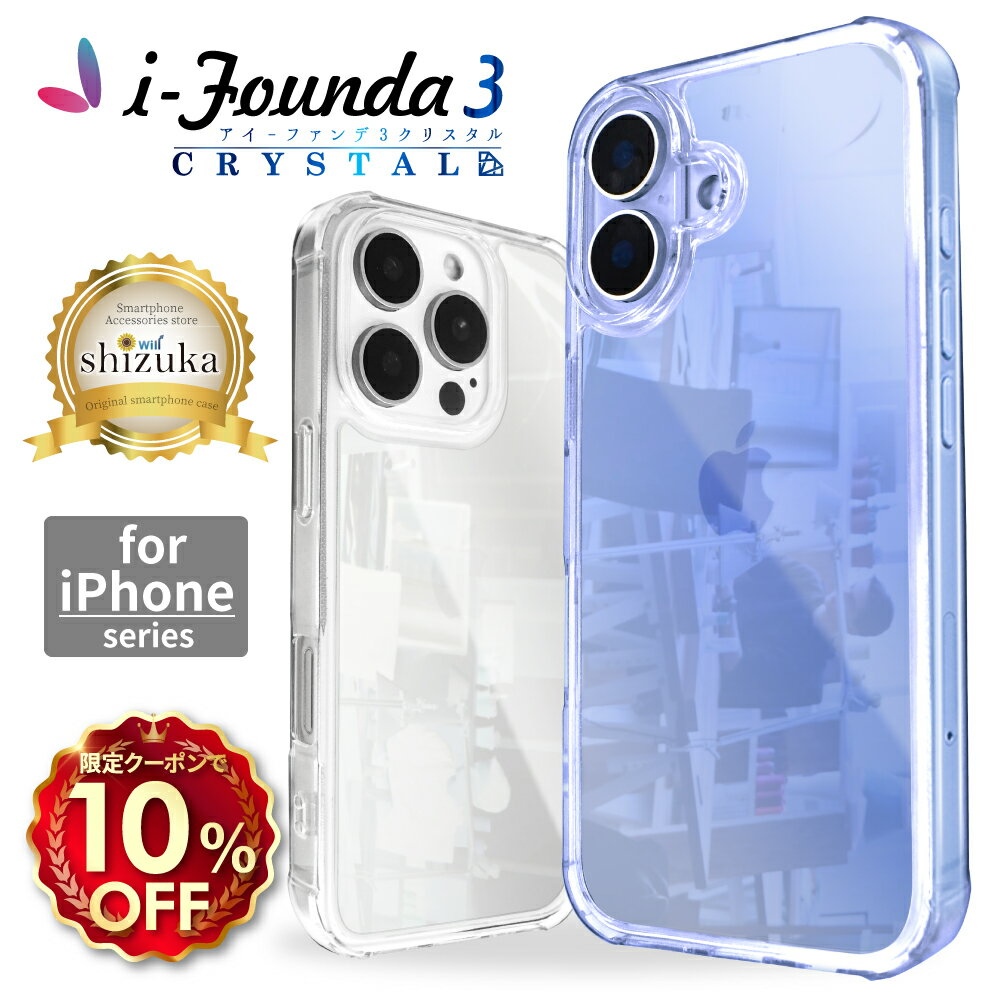 shizukawill シズカウィル ガラスフィルム 相性保証対象 iPhone シリーズ 強化ガラス ケース 高透明 耐衝撃 耐傷性 ※ご購入時に機種を選択してください。 ■ アイファンデ3 対応機種 ラインナップ iPhone17 iPhone Air iPhone17 Pro iPhone17 Pro Max iPhone16e iPhone16 iPhone16 Plus iPhone16 Pro iPhone16 Pro Max iPhone15 iPhone15 Plus iPhone15 Pro iPhone15 Pro Max iPhone14 iPhone14 Plus iPhone14 Pro Max iPhone13 iPhone13 mini iPhone13 Pro Max iPhone12 iPhone12 Pro iPhone12 mini iPhone12 Pro Max iPhoneSE 第3世代 (2022年発売) iPhoneSE 第2世代 (2020年発売) ※iPhoneSE 第1世代(2016年発売)は対応しておりません iPhone11 iPhone8 iPhone7 iPhone XR iPhone XS ■アイファンデ3 カラー 高透明 クリア -アイファンデ3 クリスタル(i-Founda3 crystal)- 衝撃を吸収・分散するTPUと高い透明度の強化ガラスを 使用したハイブリッド構造のクリアケース ■ケース特徴 ・ガラスならではの美しさ =透明度が高く黄ばまない ・耐傷性 =特殊なコーティングを施した強化ガラス ・耐衝撃性 =四隅のエアポケットクッションが落下の衝撃を吸収 ・カメラホールをレンズより高く設計 =カメラレンズを擦り傷などから守る ・スピーカーホールを上部にも =音質・音量を損なわない ・サイドボタン、開口部はピッタリ =実機をもとに製作 ・ワイヤレス充電 =ケースを装着したまま充電可能 ■商品仕様 素材:TPU(熱可塑性ポリウレタン)・強化ガラス 仕様:高透明・高耐衝撃・高耐傷性・曲げに強い・ワイヤレス充電対応 【注意事項】 各部の仕様が機種によって異なりますので、 画像の「ご確認お願いいたします」をご確認ください。 Magsafeも対応していますが、マグネットは付属していない為、 充電器と吸着はいたしません。 製品の色味に関しては、お使いのデバイスの表示性能や設定により 変化する可能性がありますのでご注意ください。 品質・検品には万全を期しておりますが、万一商品に 不具合等御座いましたらカスタマーまでご連絡お願いいたします。 お客様に満足して頂きたく品質改善を日々しております。 それに伴い予告なしにデザインが変更する場合がございます ご了承くださいませ。随時商品ページにてお知らせいたします。 メーカー希望小売価格はメーカー商品タグに基づいて掲載していますTP99