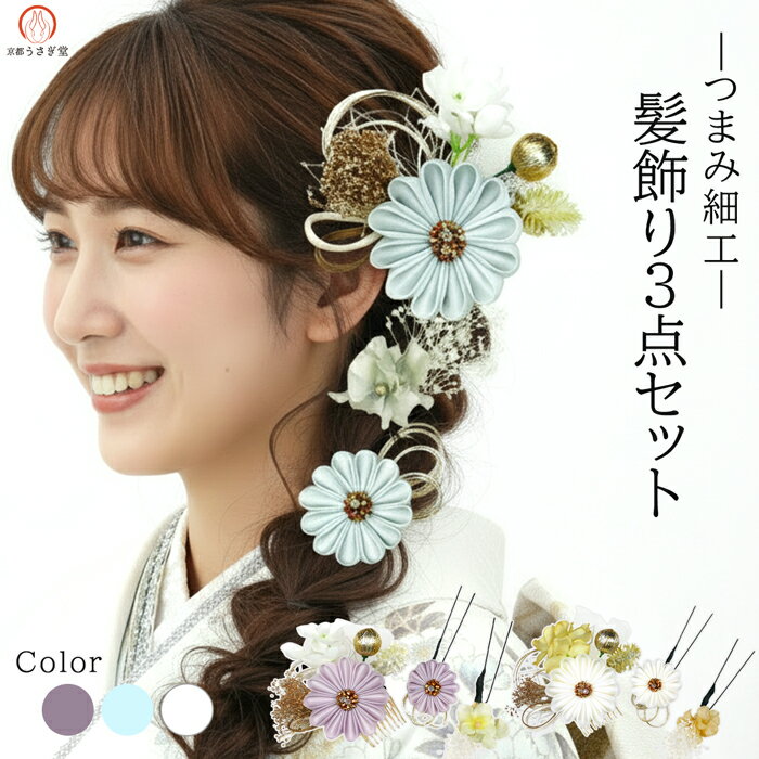 髪飾り 3点セット 成人式 振袖 kk-008 白 紫 青 卒業式 袴 結婚式 和装 洋装 水引 訪問着 浴衣 お洒落着物