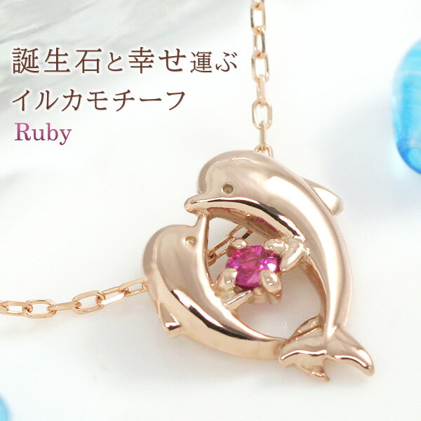 ルビー ネックレス イルカ/ドルフィン ハート ペンダント 天然ルビーネックレス 天然石 7月誕生石 10k k10ピンクゴールド 赤 宝石 「ラヴ・ナイア」 誕生日プレゼント 女性 彼女 妻 嫁 娘 10代 20代 30代 25歳【在庫あり】