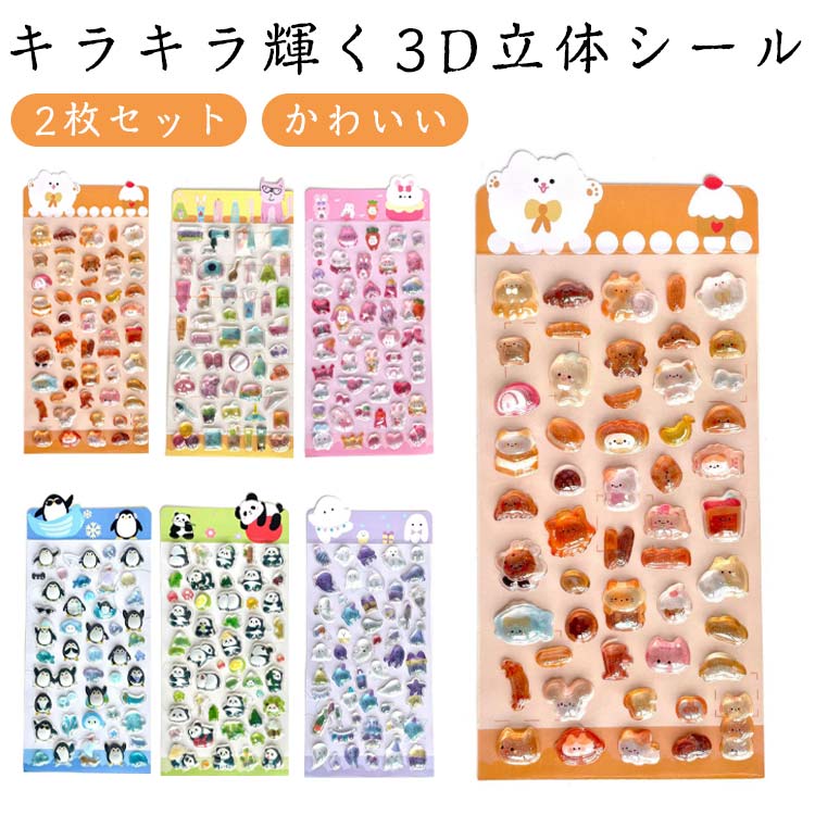 CHENLONB 立体シール ぷくぷくシール 2枚セット かわいい キラキラ 貼り付け可能 デコシール DIY用 手芸用品 日記帳用 携帯電話飾り用