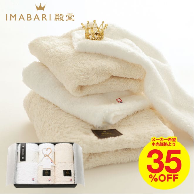 ● のしや包装紙などは購入手続き中に選択できます。 ● 配送日指定可。 商品詳細 今治タオル IMABARI殿堂 タオルセット SPEC ●内容:バスタオル×2、フェイスタオル×1、ハンドタオル×1 ●サイズ: (バスタオル)約50×110cm、(フェイスタオル)約34×80cm、(ハンドタオル)約34×34cm ●箱サイズ:(約)横40×縦30×高さ8cm ●素材:綿100%、日本製 メーカー希望小売価格はメーカーカタログに基づいて掲載しています。 ■さまざまなギフトアイテムをご用意しております。 内祝 内祝い お祝い返し ウェディングギフト ブライダルギフト 引き出物 引出物 結婚引き出物 結婚引出物 結婚内祝い 出産内祝い 命名内祝い 入園内祝い 入学内祝い 卒園内祝い 卒業内祝い 就職内祝い 新築内祝い 引越し内祝い 快気内祝い 開店内祝い 二次会 披露宴 お祝い 御祝 結婚式 結婚祝い 出産祝い 初節句 七五三 入園祝い 入学祝い 卒園祝い 卒業祝い 成人式 就職祝い 昇進祝い 新築祝い 上棟祝い 引っ越し祝い 引越し祝い 開店祝い 退職祝い 快気祝い 全快祝い 初老祝い 還暦祝い 古稀祝い 喜寿祝い 傘寿祝い 米寿祝い 卒寿祝い 白寿祝い 長寿祝い 金婚式 銀婚式 ダイヤモンド婚式 結婚記念日 プレゼント ギフト ギフトセット セット 詰め合わせ 贈答品 お返し お礼 お祝い返し 御礼 ごあいさつ ご挨拶 御挨拶 プレゼント お見舞い お見舞御礼 お餞別 引越し 引越しご挨拶 記念日 誕生日 父の日 ちちの日 母の日 ははの日 敬老の日 記念品 卒業記念品 卒園記念品 定年退職記念品 ゴルフコンペ コンペ景品 景品 賞品 粗品 お香典返し 香典返し 志 満中陰志 弔事 会葬御礼 法要 法要引き出物 法要引出物 法事 法事引き出物 法事引出物 忌明け 四十九日 七七日忌明け志 一周忌 三回忌 回忌法要 偲び草 粗供養 初盆 供物 お供え お中元 御中元 夏ギフト 季節の贈り物 クリスマスプレゼント お歳暮 御歳暮 お年賀 御年賀 残暑見舞い 年始挨拶 バレンタインデー ホワイトデー うちいわい のし無料 メッセージカード無料 ラッピング無料 手提げ袋無料 人気 手土産 プチギフト お配りギフト 体験ギフト ソーシャルギフト 法人注文 まとめ買い 大量注文 ■幅広い年代の方へのギフトに。 父 母 父親 母親 お父さん お母さん 義父 義母 おじいちゃん おばあちゃん 両親 家族 兄 弟 姉 妹 親戚 祖父 祖母 叔父 叔母 友人 友達 女友達 男性 男子 女性 女子 夫 妻 旦那さん 奥さん カップル 彼氏 彼女 先生 会社 同僚 上司 取引先 部下 ママ友 20代 30代 40代 50代 60代 70代 80代 キッズ ベビー 子供 幼稚園 小学生 中学生 高校生 大学生 社会人 成人 敬老会今治の歴史100年にもなる老舗タオル屋の匠と、天然地下水を扱う洗いの達人がこだわり抜いて作り上げたこのタオルは肌ざわりの良さ・軽さ・吸水速乾性に優れ、そしてやわらかさがいつまでも続きます。一般の糸より太くて光沢のある空気のように軽いサンホーキンの中空糸を贅沢に使用。まさに「殿堂」という名にふさわしい、理想的なタオルです。 ■さまざまなギフトアイテムをご用意しております。 内祝 内祝い お祝い返し ウェディングギフト ブライダルギフト 引き出物 引出物 結婚引き出物 結婚引出物 結婚内祝い 出産内祝い 命名内祝い 入園内祝い 入学内祝い 卒園内祝い 卒業内祝い 就職内祝い 新築内祝い 引越し内祝い 快気内祝い 開店内祝い 二次会 披露宴 お祝い 御祝 結婚式 結婚祝い 出産祝い 初節句 七五三 入園祝い 入学祝い 卒園祝い 卒業祝い 成人式 就職祝い 昇進祝い 新築祝い 上棟祝い 引っ越し祝い 引越し祝い 開店祝い 退職祝い 快気祝い 全快祝い 初老祝い 還暦祝い 古稀祝い 喜寿祝い 傘寿祝い 米寿祝い 卒寿祝い 白寿祝い 長寿祝い 金婚式 銀婚式 ダイヤモンド婚式 結婚記念日 プレゼント ギフト ギフトセット セット 詰め合わせ 贈答品 お返し お礼 お祝い返し 御礼 ごあいさつ ご挨拶 御挨拶 プレゼント お見舞い お見舞御礼 お餞別 引越し 引越しご挨拶 記念日 誕生日 父の日 ちちの日 母の日 ははの日 敬老の日 記念品 卒業記念品 卒園記念品 定年退職記念品 ゴルフコンペ コンペ景品 景品 賞品 粗品 お香典返し 香典返し 志 満中陰志 弔事 会葬御礼 法要 法要引き出物 法要引出物 法事 法事引き出物 法事引出物 忌明け 四十九日 七七日忌明け志 一周忌 三回忌 回忌法要 偲び草 粗供養 初盆 供物 お供え お中元 御中元 夏ギフト 季節の贈り物 クリスマスプレゼント お歳暮 御歳暮 お年賀 御年賀 残暑見舞い 年始挨拶 バレンタインデー ホワイトデー うちいわい のし無料 メッセージカード無料 ラッピング無料 手提げ袋無料 人気 手土産 プチギフト お配りギフト 体験ギフト ソーシャルギフト 法人注文 まとめ買い 大量注文 ■幅広い年代の方へのギフトに。 父 母 父親 母親 お父さん お母さん 義父 義母 おじいちゃん おばあちゃん 両親 家族 兄 弟 姉 妹 親戚 祖父 祖母 叔父 叔母 友人 友達 女友達 男性 男子 女性 女子 夫 妻 旦那さん 奥さん カップル 彼氏 彼女 先生 会社 同僚 上司 取引先 部下 ママ友 20代 30代 40代 50代 60代 70代