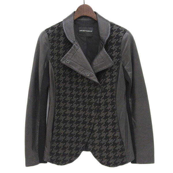 ◆超美品◆ エンポリオアルマーニ ARMANI レザー×ニットジャケット 黒 サイズ38 レディース [272595] 【中古】