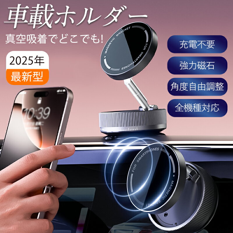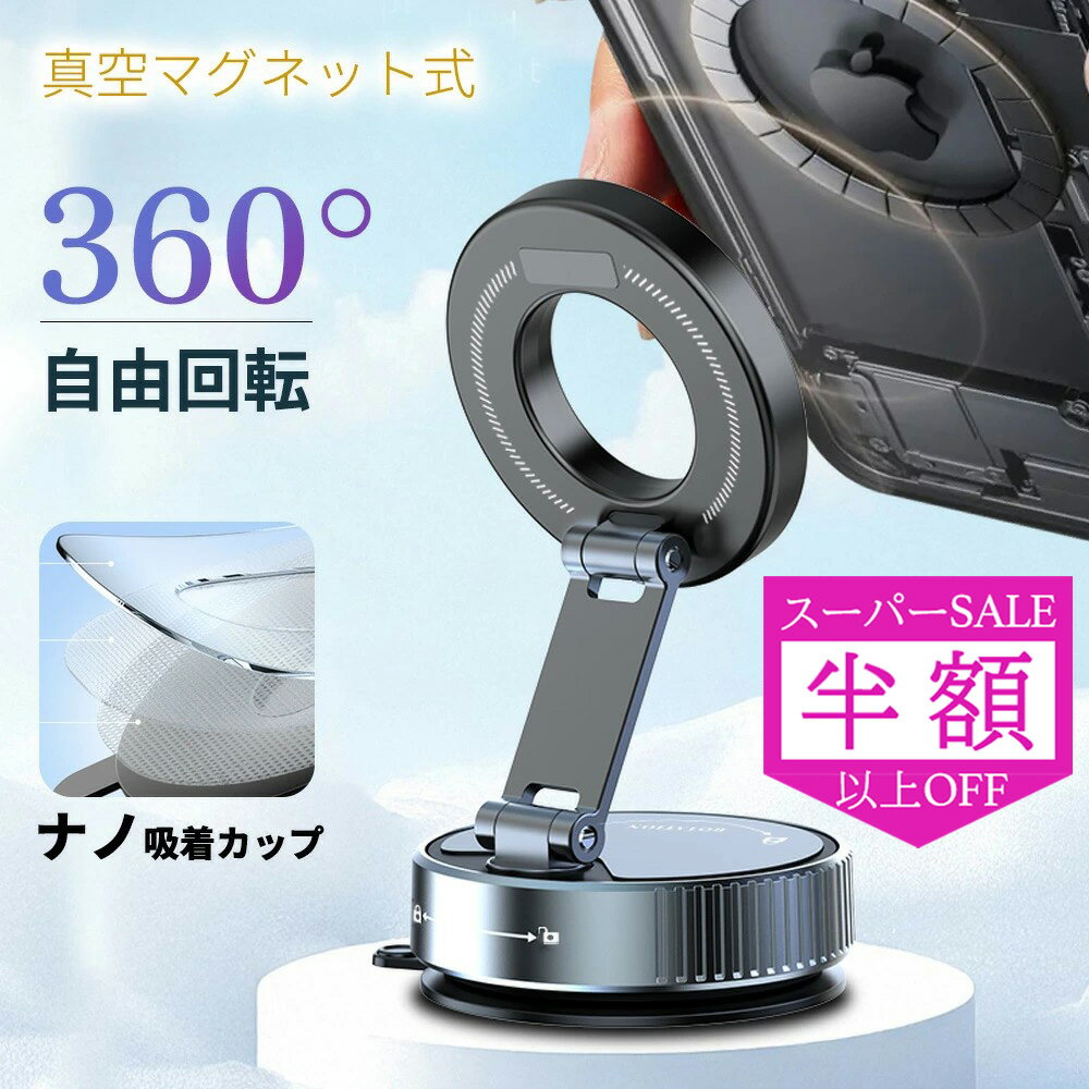 【スーパーSALE期間限定:2,480円→2,180円!】車載ホルダー スマホホルダー 携帯ホルダー スマホスタンド 真空 磁石 マグネット式 magsafe ダッシュボード 卓上 折りたたみ 車載 吸着