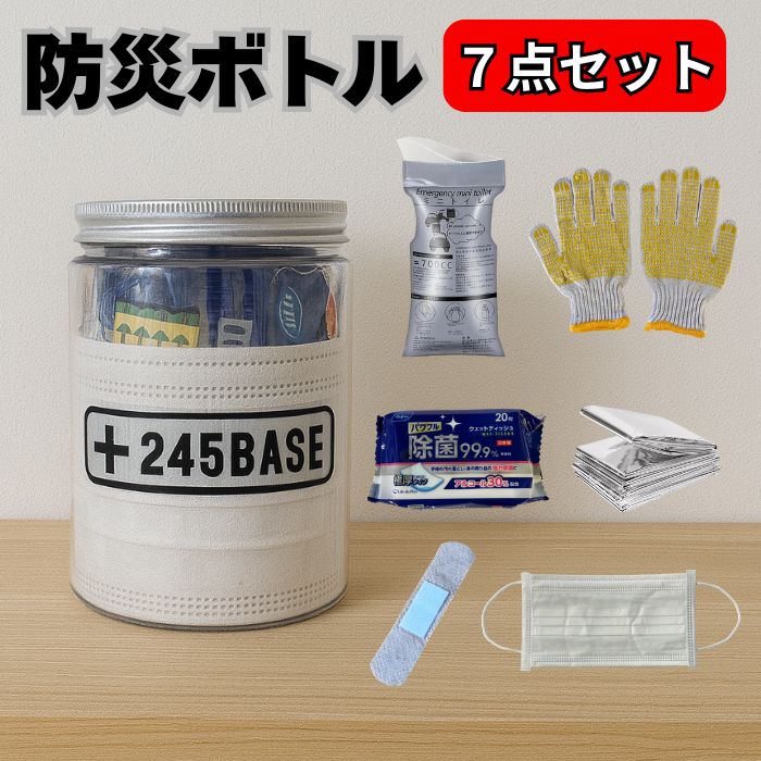 防災ボトル 防災キット 防災用品 防災セット 新生活 一人暮らし用 車載用 非常用 停電 震災 災害 水害 火事 備蓄品 地震 非常持ち出し袋 アルミシート 防寒 保存水 防災ボトル【1人用】 非常時用 防災キットです。1人用のセットになっております。【9.5cm×14cm】軽くてコンパクトなので持ち出しの際便利です。【セット内容】・ボトル 1本・携帯用トイレ 1個・防寒アルミシート 1枚・個包装 不織布マスク 1枚・滑り止め付き軍手 1双・アルコール除菌シート(20枚入り) 1袋・絆創膏 2枚実際に東日本大震災を体験した福島県の私達が本当に必要だと感じた商品を厳選しました。万が一に備えて一家に1セット常備しておくと安心です。 5