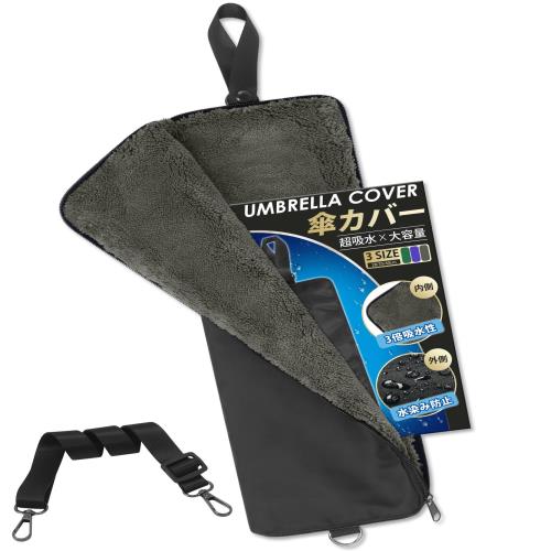 サイズS:長さ→28cm、幅→12cm。M:長さ→35cm、幅→12.5cm。L:長さ→40cm、幅→13cm。肩掛けベルト:S、M、L→43cm~75cm調節可能(金属フック 2 つを含む)。 超吸水タオル生地&水染み防止SLEEPSINEROの吸水傘カバーは裏側に超吸水のタオル生地を採用しました。水に触れた瞬間、サッと吸水してくれます。その吸水力は綿のタオルの約3倍、スポンジのような驚きの吸水力があります。 雨に濡れた折畳傘を吸水傘カバーに入れると、傘に付着した水分がしっかり吸収され、傘から水が滴り落ちてくるということはありません。また、外側は高密度の防水素材で、水の染み出しを防止します。水分を多く含むと傘ケースが重くなった時、手で絞ったら水切りできます。雨が多い梅雨時期ににぴったり! 40cm大きいサイズ&3サイズ選べる普通の吸水傘ケースは長さは35CMで、大きいサイズの折りたたみ傘に適用しません。しかし、SLEEPSINEROの折畳傘ケースは3サイズを用意しており、長さ28CMから40CMまでの折りたたみ傘全て利用いただけます。大きいサイズで幅広は13CMに拡大され、6本骨・8本骨・12本骨の折畳み傘、紳士折りたたみ傘、レディース折りたたみ傘など様々な折畳み傘をよく収納します。 調節・取り外し可能肩掛けベルト折り畳み傘用傘カバーは肩掛けベルトが付くので、手が疲れる・塞がっている時、折り畳み傘を肩に掛けたりすることができます。調節可能なクリップを上にスライドさせてベルトを短くするか、下にスライドさせてたるみを増やします。長さが43cm~75cmでサイズ調節可能ですので、ご要望に応じて自由に調整できます。簡単に取り外しでき、操作が便利です。また、ベルトは2cm幅広で柔らかいので、非常に快適で、肩を完璧にリラックスさせます。さらに、肩掛けベルトは軽いので、余分な負担がかかりません。 軽量&携帯便利SLEEPSINEROの収納傘ケースは「軽い」と「大きい」の機能を兼ね備えた傘袋です。そのため、カバンに常備しても負担になりません。また、柔らかくて折り畳みやすく、折り畳んだ部分を帯で巻き付けボタンで留めることでコンパクトに収納することが出来るので、スペースを取りません。雨の日折畳み傘を防水傘袋に収納してカバンに入れたり、肩に掛けたり、水染みの心配もなく持ち運びやすいです! 適用場所通勤、通学、車、地下鉄、自転車、公共交通機関、出張、登山、買い物、旅行、散歩などの場合に大変便利で役に立ちます。3倍の吸水力を持っているので、車用の折畳傘ケースとして大活躍です!