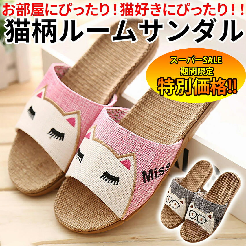 【楽天スーパーSALE限定★特別価格】 スリッパ 麻素材 かわいい 可愛い 男女兼用 猫 キャット 自宅用 来客用 涼しい おしゃれ 超軽量 レディース メンズ カップル 麻 ベランダ 秋 春 蒸れない 室内 通気 ピンク グレー 送料無料 1000円 ポッキリ 2025 人気