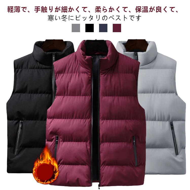 ダウンベスト メンズ ベスト 中綿ベスト 立ち襟 中綿入り 大きいサイズ アウトドア スタンドカラー アウター ジップアップ インナーダウン 作業着 登山 アウトドア 旅行 釣り 無地 防寒 撥水 暖かい 軽量 男女兼用 秋冬