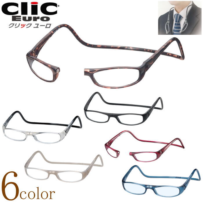[選べる6色]老眼鏡 正規品 クリックリーダー クリックユーロ CliC Euro 磁石 首掛け おしゃれ シニアグラス リーディンググラス 男性用 女性用 マグネット 開閉式 読書用メガネ 辞書 新聞 40代 50代 カジュアル 母の日 父の日 敬老の日 贈り物 プレゼント