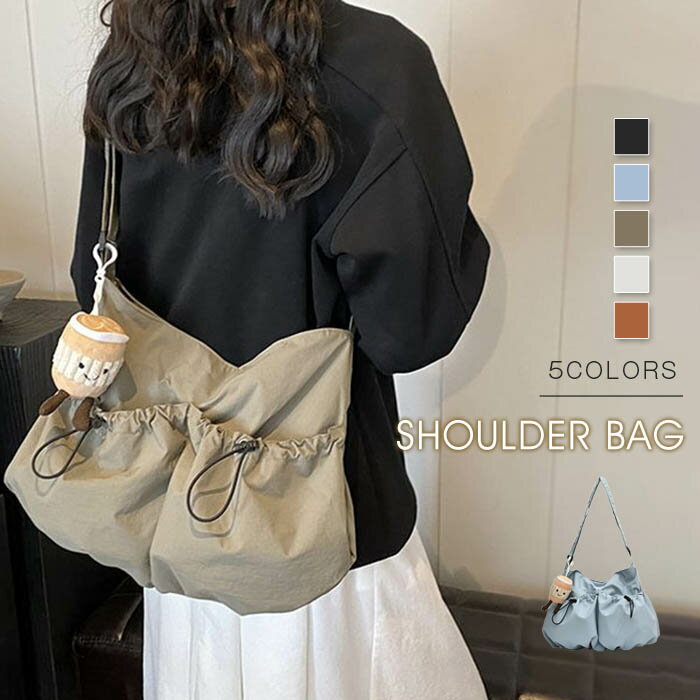 ショルダーバッグ レディース 肩掛けバッグ 斜めがけバッグ 外ポケット 無地 大容量 フリル 鞄 軽量 マグネット 楽ちん 太ベルト シンプル 大人 可愛い おしゃれ 通学 通勤 カジュアル 軽い 超軽量 ブラック 送料無料