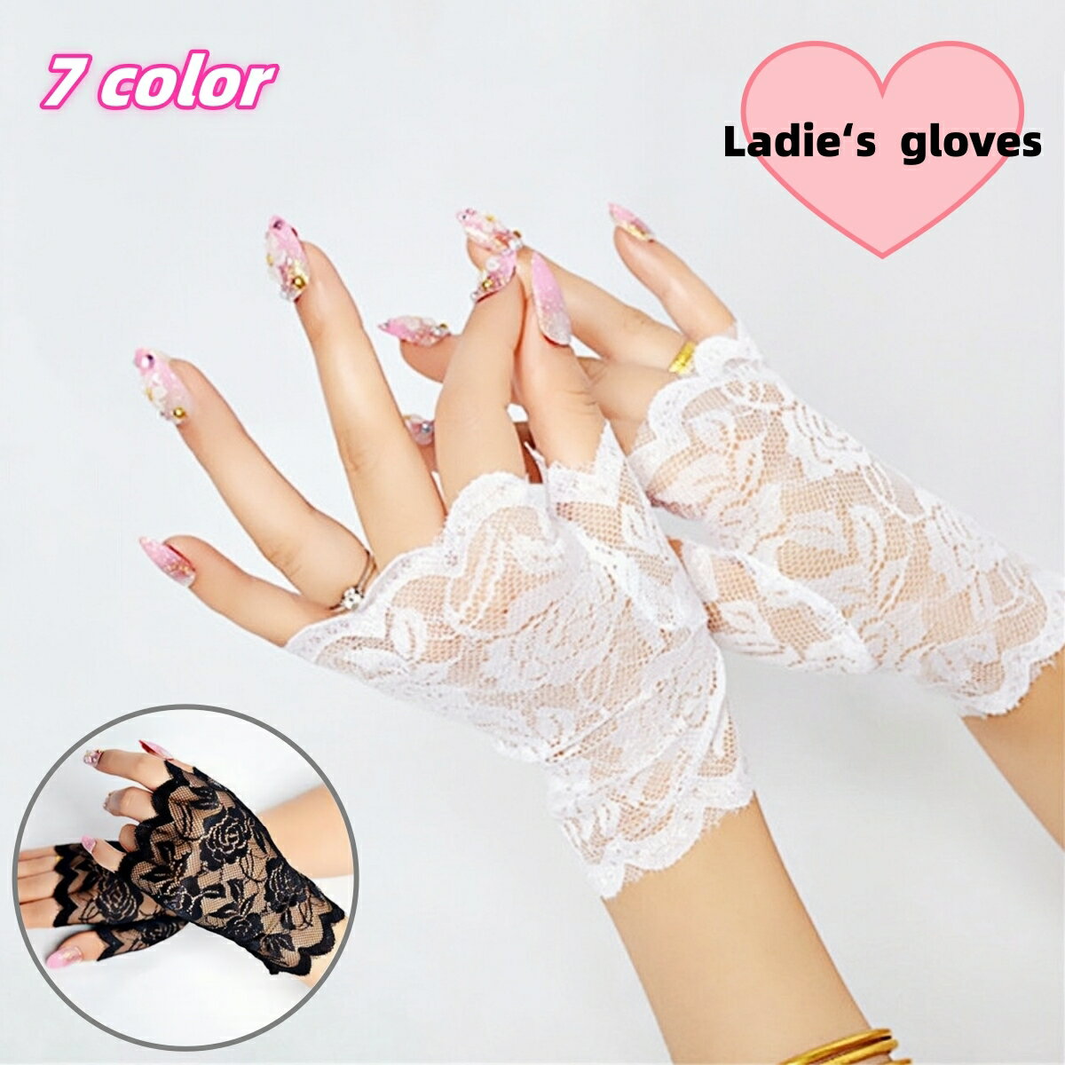 総レースでエレガントなデザインのレディース用指なし手袋です。 ハーフフィンガータイプなので、スマホ操作にも◎ 【サイズについて】 画像をご参照ください。 【カラーについて】 生産ロットにより柄の出方や色の濃淡が異なる場合がございます。 お使いのモニターや撮影時の光の加減などにより 画像と実際の商品のカラーが異なる場合もございます。 予告なしにカラーやデザインなどの変更がある場合もございます。 【素材について】 ポリエステル 【補足説明】 商品の性質上、手洗いでのお洗濯をお勧めしております。