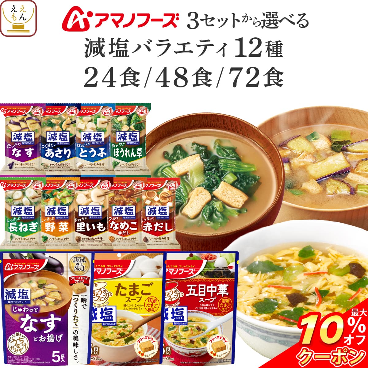 \ クーポン 配布中/ 母の日 アマノフーズ フリーズドライ 減塩 バラエティ 24食 48食 72食 から 選べる 味噌汁 スープ 詰め合わせ セット 【 送料無料 北海道沖縄以外】 インスタント 即席 減塩味噌汁 仕送り 一人暮らし 食品 常温 2026 新生活 内祝い ギフト