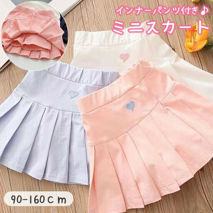 送料無料 ミニスカート インナーパンツ付き キッズ ジュニア ベビー 子供用 女の子 ボトムス ショート丈 Aライン プリーツ 無地 かわいい おしゃれ