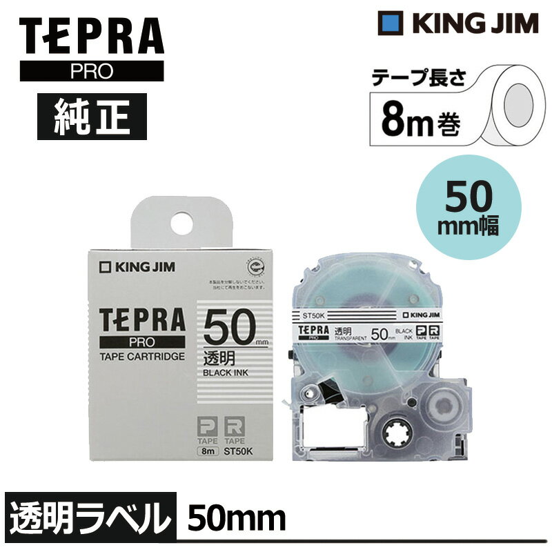 【KING JIM】キングジム テプラ PRO 純正 テープカートリッジ 透明ラベル 50mm幅 黒文字 TEPRA プロ