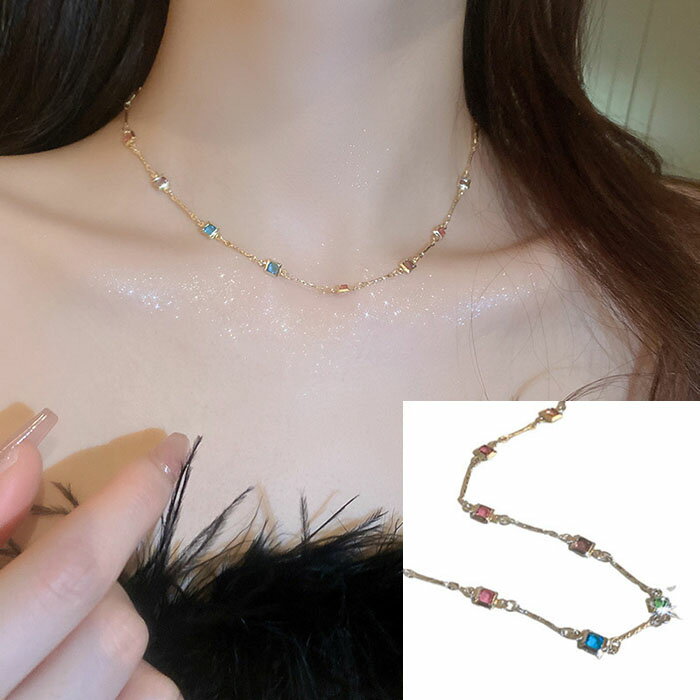 ネックレス レディース シンプル 方形 ジルコン アクセサリー 金属アレルギー 女性 OL通勤 ゴールデン シルバー 首飾り プレゼント ギフト カジュアル おしゃれ 普段使い 華奢 人気 パーティー デート 結婚式 母の日 誕生日 彼女 妻 ネックレス