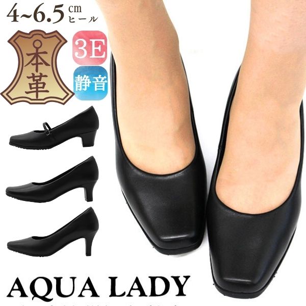AQUA LADY アクアレディ パンプス レディース A9050 4E 幅広 本革 女性 婦人 オフィス リクルート 就活 通勤 フォーマル プレーン 黒 冠婚葬祭