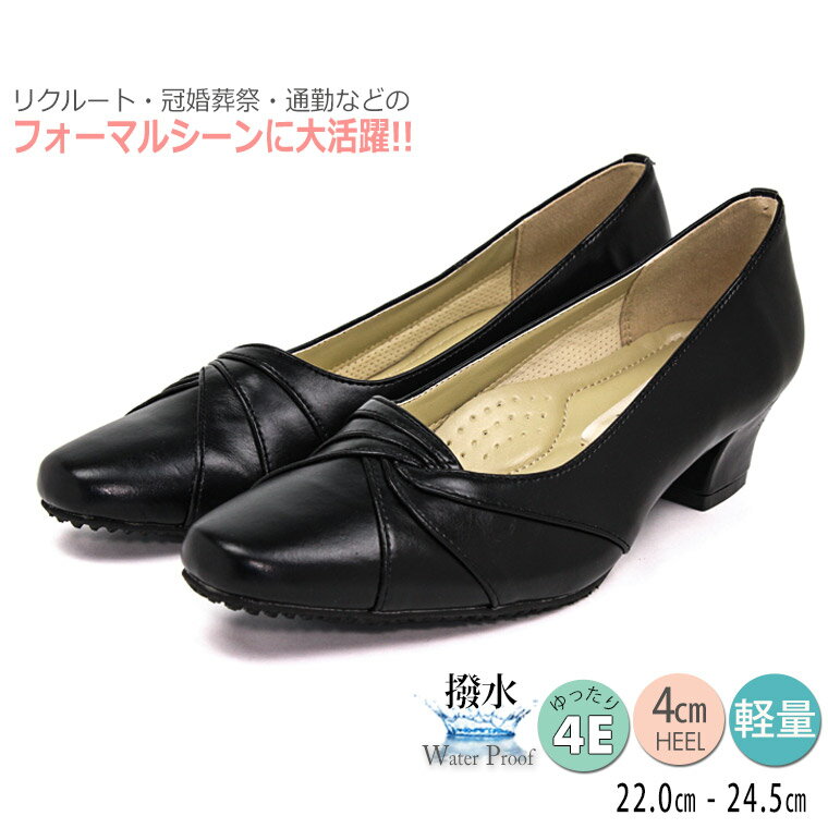 【送料無料】パンプス 靴 4E 5E 幅広 ゆったり ワイド 大きいサイズ 制菌消臭 機能性 フォーマル オフィス 通勤 ブラック 冠婚葬祭 卒業式 就活 入学式 (アクアカルダ)