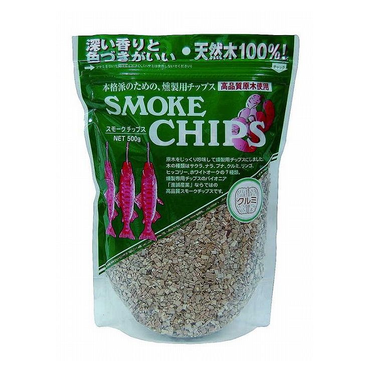 進誠産業 スモーク用チップ(1袋500g入) オニクルミ DSM07003 JANコード 4510407300406●種類:オニクルミ●材質:木材(オニグルミ)■スモーク用チップ、ウッドの特長〔サクラ〕日本では最もポピュラー。■香りが強く、クセのある食品に合わせて使う。■マトンやポーク向き。■〔ナラ〕木材の中ではタンニンが多いため、色つきが早く、やや渋みがある。■〔オニクルミ〕ヒッコリーによく似た香りで、肉類、魚類にと幅広く利用することが出来ます。■〔リンゴ〕甘い部類に属し、マイルドな仕上がり。■クセのない淡白な食品(鶏肉や白身魚)に合う。■〔ヒッコリー〕欧米では最もポピュラー。■香りもよくオールマイティなチップ。■魚類のほかに、ベーコン、ハムに使用される。■〔ブナ〕ナラと共に魚介類にマッチする。■すっきりとした香りが特長。■〔ホワイトオーク〕ニッカウィスキーの樽を使用していますのでほのかに甘い香りがします。■淡白な素材に向いています。■多少の 渋みはありますが、クセのない香りで魚類に合います。■色づきも良好です。※メーカーの都合により、パッケージ・仕様等は予告なく変更になる場合がございます。【送料について】北海道、沖縄、離島は送料を頂きます。