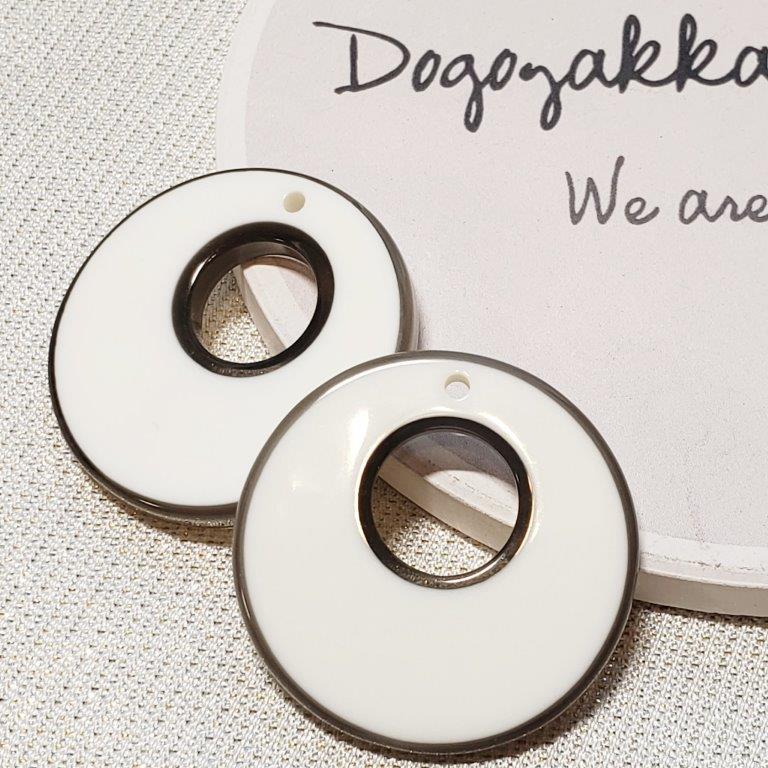 【道後雑貨店P91】1ペア ※モノトーンサークル インポート ピアス/ピアス土台 ハンドメイド アクセサリーパーツ アクリルストーン アクリルビーズ チャーム レア インポート 手芸 材料 副資材 レトロ モード系 デザインストーン