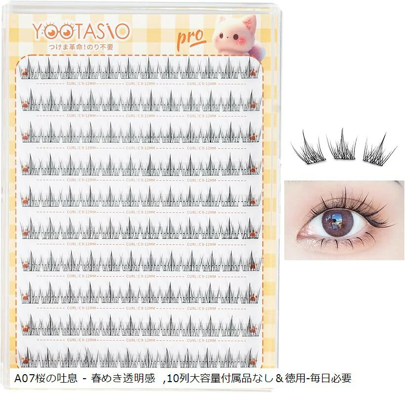 1秒マツエク つけまつげ のり不要日本国内JIS基準検査済みつけまつ毛 グルー不要 つけまつ毛ブラック 部分つけまつげ 初心者 で簡単装着 立体感 可愛い 束感 (A07桜の吐息 - 春めき透明感, 10列大容量付属品なし&徳用-毎日必要)