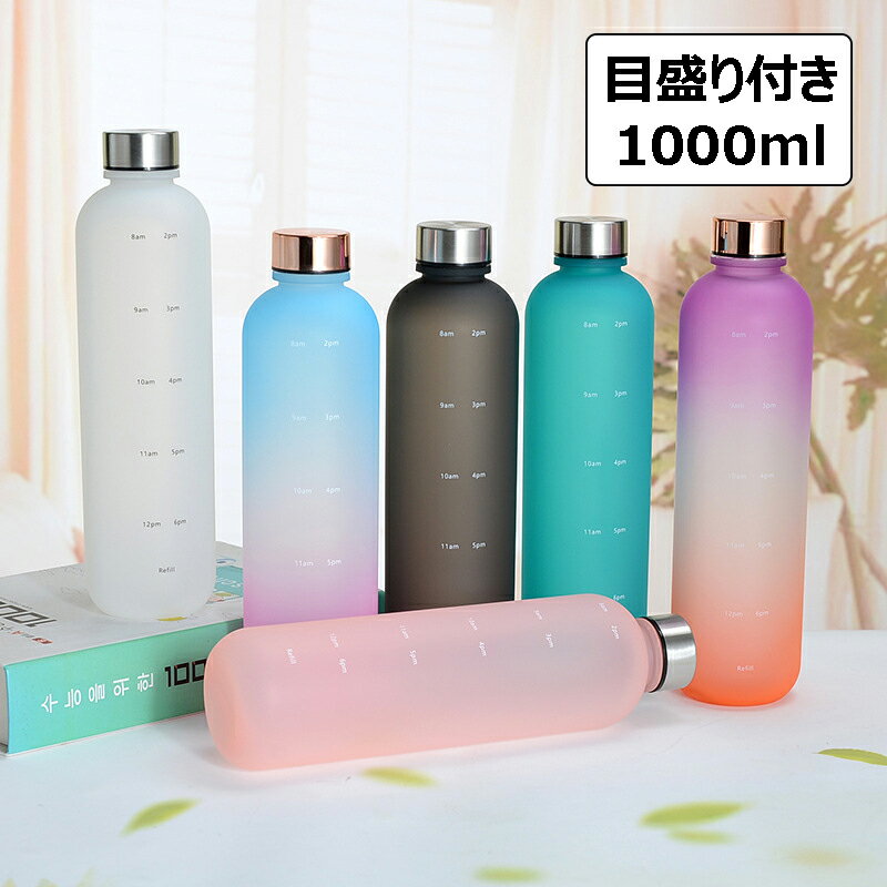 ウォーターボトル 1000ml 水筒 目盛り付き 大容量 1リットル スポーツボトル 軽量 タイムマーカー 男女兼用 携帯便利 漏れ防止 プラスチック グラデーションカラー 直飲み 子供 女の子 おしゃれ かわいい クリアボトル 部活 通学 通勤 小学生 中学生 全9色