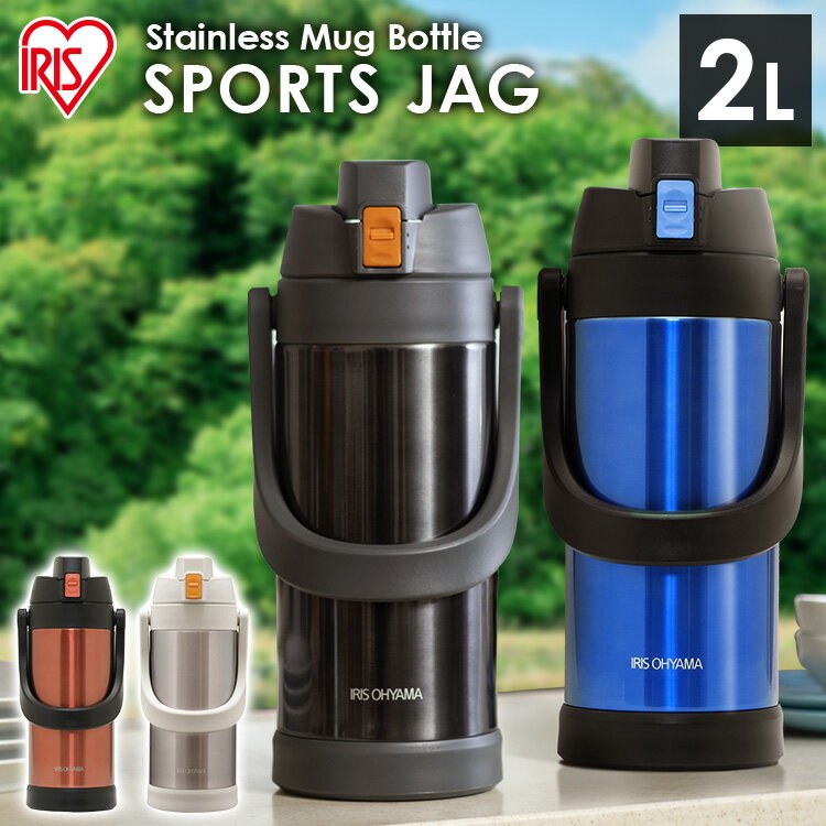 \レビュー記入でクーポンプレゼント/ 水筒 2L スポーツジャグ 子供保冷 ステンレスボトル 真空断熱 直飲み ワンタッチ ロック付 部活 運動 小学生 アウトドア 屋外作業 スポーツドリンク 対応 大容量 子ども 2リットル 2000ml アイリスオーヤマ SJ-2000 *