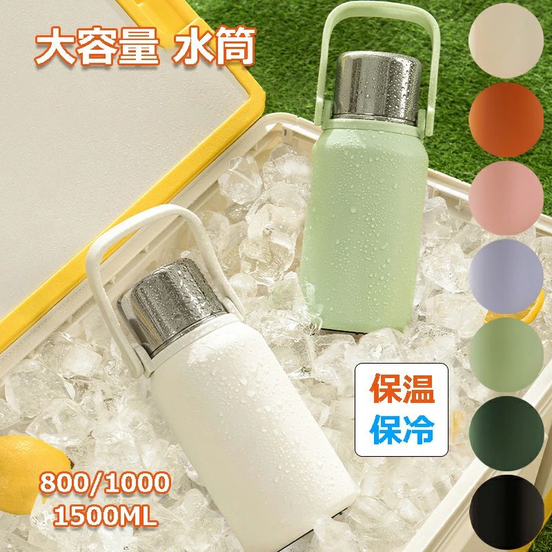 水筒 マグ 大容量 子ども 大人 保冷 保温 ステンレスボトル 1000ml 800ml 1500ml 子供用 水筒 ワンタッチ ストラップ付き 持ち運び コップ付き 保温 保冷 直飲み 水筒 こぼれない 316ステンレス 真空断熱 水分補給 小学生 おしゃれ プレゼント 部活 学校 大人 ハンドル付