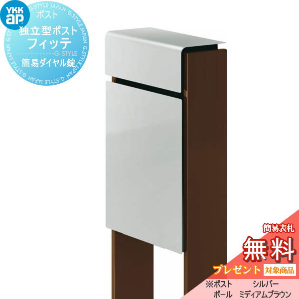 【無料★特典対象】 郵便ポスト 郵便受け スタンドタイプ YKK YKKap スタンドポスト フィッテ 簡易ダイヤル錠(1桁合わせタイプ) 上入れ前出しタイプ カラー 本体:シルバー(YS) 柱:ミディアムブラウン(4J) 郵便ポスト郵便受け 独立型 ポールセット 一戸