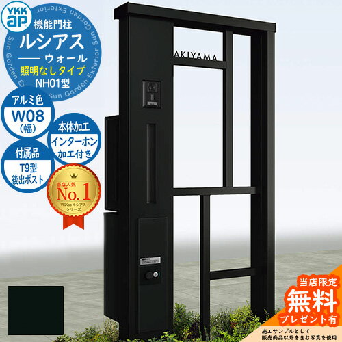 【無料★特典付】機能門柱 ルシアスウォール NH01型 W08 照明なしタイプ 本体:アルミ色 後出し:T9型ポスト シンプレオ宅配ボックス2型 インターホン加工付き 門柱 ポスト YKKap UYA-NH01 郵便ポスト 郵便受け 一戸建て用 一体型