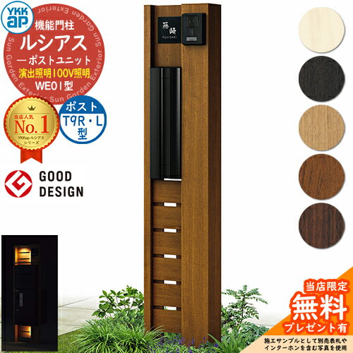 【無料★特典付】機能門柱 ルシアスポストユニット WE01型 演出照明タイプ(100V照明) 本体:木調色 ポスト:アルミ色 T9R(L)型(横出し) 門柱 ポスト YKKap UMB-WE01 郵便ポスト 郵便受け 機能ポール 一戸建て用 一体型 LED
