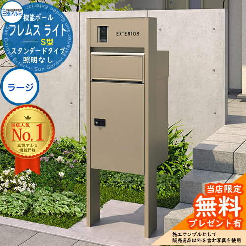【無料★特典付】機能ポール フレムス ライト Light スタンダードタイプ 本体:形材色 照明なし 宅配ボックス【S型】:ラージ 三協アルミ 大容量 一戸建て用 おしゃれ 門柱 ポスト 機能門柱 シンプル 郵便受け 郵便ポスト
