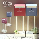 ※沖縄・離島への発送はできかねます。ご注文いただいた後に当店にてキャンセルさせていただく場合がございますのでご了承ください。 商品の特徴●サイズ/重量:W37×D28×H114.5cm/9.2kg ・投函口:約W31.1×H3.2cm ・取出口:約W31.1×H23.7cm●梱包サイズ/梱包重量:W44×D39×H73cm/kg●メーカー希望小売価格:16,500円(税別)●材質:金属(鉄)・・・ガルバナイズド処理を施しています●塗装:粉体塗装●組立OR完成:組立品 ●スタンドタイプ:置くだけで使用可能なスタンド式。壁掛け式とは異なり面倒な施工の手間がかかりません。●大きな郵便物も投函可能:茶封筒角型2号やレターパックライトが投函可能です。●セキュリティー:鍵付きなので防犯面に安心です。また、スペアキーが1本付属しています。●郵便取出口は、扉が最大約75°くらいまでにしか開かない構造ですので、郵便物取り出し時に、郵便物の落下の心配がありません。●土台部は、標準サイズのレンガ(21×10×6cm)を最大3個入れることが可能です(横向き×2、縦向き×1)。●2色展開:カラーは上品な色合いのワインレッドとくすんだブルーのラベンダーブルーで、脚と台座部、郵便投函口はホワイトになります。●ポスト本体が特徴を持ったカラーで、玄関を綺麗に彩ります。●錆びにくい加工:ガルバナイズド処理を施しているため、錆びにくくなっております。●地面固定用のアンカーボルトが付属します。土台部にアンカーボルトを打ち込む穴があり、地面とポストを固定することも可能です。※防水塗装は施しておりませんので、軒下や屋根がある場所への設置を推奨致します。 セキュリティー 土台固定 施工不要 スタンドタイプ 防水 レターボックス 北欧 スチール スリム 赤 レッド おしゃれ アンティーク 置き型ポスト 一戸建て用 新聞受け 錆びにくいガルバナイズド加工スチール 新築 シンプルおしゃれ ピンク パープル ラベンダー ホワイト Olgaオルガ スタンド式ポスト ポストスタンド ひねりロック
