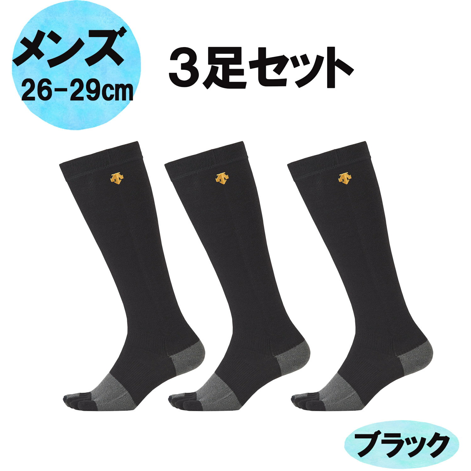 【12/3 20時から全品3%OFFクーポン&Pアップ】 デサント DESCENTE 5本指カラーソックス メンズ 3足セット ブラック 野球 ソフトボール 部活 靴下 練習 ハイソックス 5本指 滑り止め アーチサポート かかとフィット ワンポイント C8701BBK6