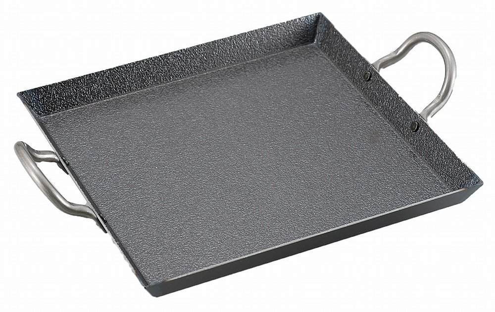 マルチ/縦34.1cmx横24.8cmx厚さ7.7cm/M-6691・パッケージ個数:1・製品サイズ:(約)幅240×奥行240×高さ20mm・製品重量:(約)950・材質:本体/鉄・表面加工:シリコン樹脂塗装・板厚1.6mm説明 こげにくく、こびりつきにくいファイバーライン加工(ファイバーライン加工とは:金属表面に繊維状の凹凸を浮き立たせた特殊加工です。食材とランダムな点で接触し、油なじみも良く焦げ付ききやこびり付きを防ぎます) 鉄製で料理もプロの仕上がり。 丈夫で長持ち。