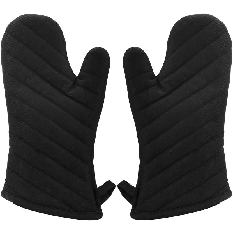 オーブンミトン - Nuovoware 耐熱 滑り止め 綿製 キッチン用 オーブンミトン・手袋 2個セット 長いタイプ BLACK