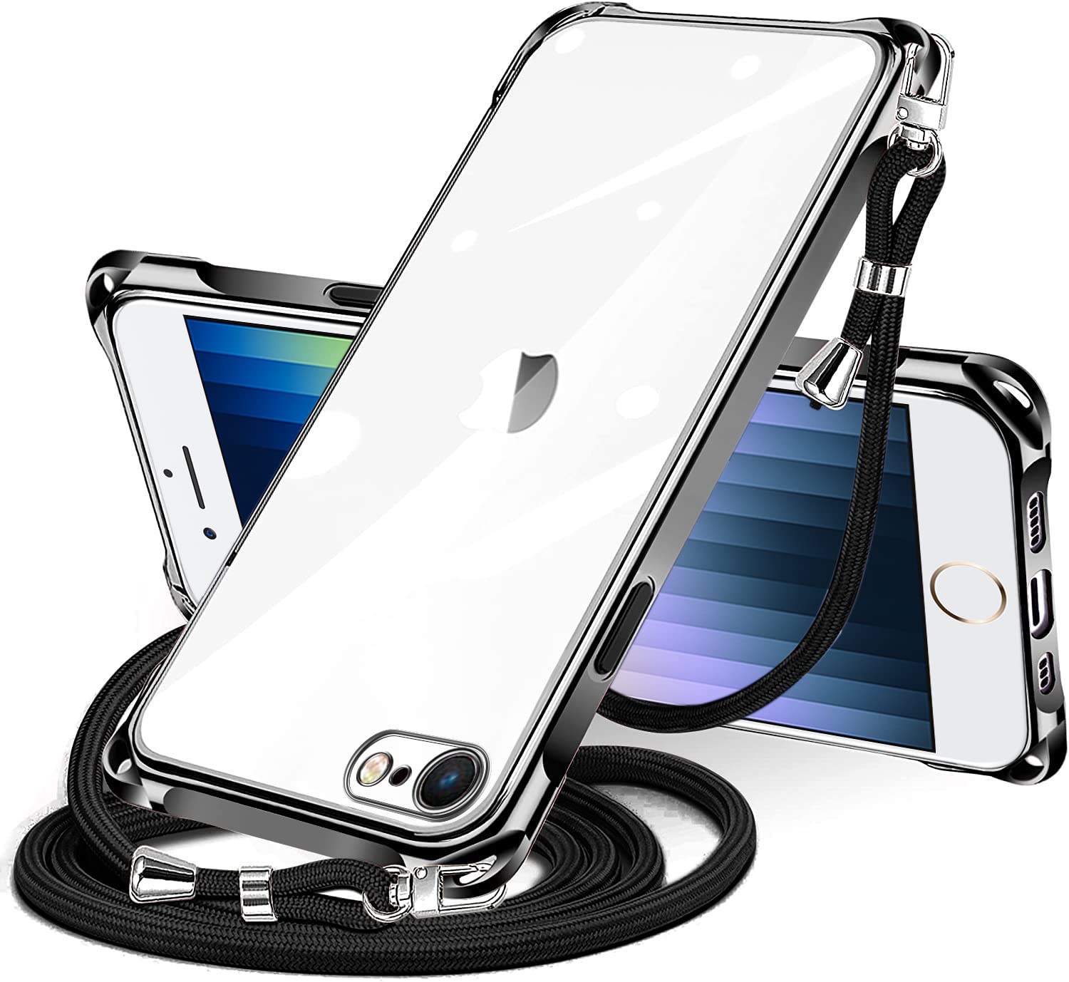 iPhone SE 第3/2世代 7 8 用 ケース クリア ショルダー iphonese 7 8 用 スマホケース アイフォン7 8 se2 se3 カバー 肩掛け 斜めかけ 縄掛けケース 透明 TPU 薄型 軽量 耐衝撃 紐付き 斜めがけ 織りストラップ付き ネックストラップ ショルダー ケース 縦/横 2WAY 長さ