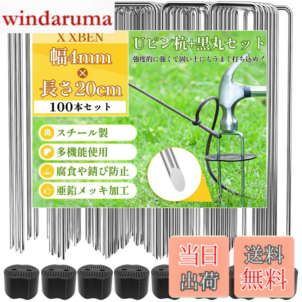 【送料無料】X XBEN 防草シート ピン 黒丸付き 幅3mm 長さ20cm 100本セット Uピン杭 除草シート 押さえピン 雑草防止シート 園芸シート 固定ピン 人工芝 ピン ビニールマルチ 固定用 押さえピン 農業用防虫ネット フック コ型ピン 農業用 変形に強い ステンレス 釘