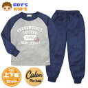 【送料無料】男児 キッズ 長袖 パジャマ スウェット 上下組 ダンボールニット ラグラン ロゴプリント バックポケット 子供服 男の子 120cm 130cm my-0027c-nv【メール便対応】