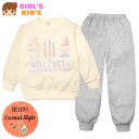 【送料無料】女児 キッズ 長袖 パジャマ スウェット 上下組 ダンボールニット 手書き風プリント バックポケット 子供服 女の子 120cm 130cm a-1868a-be【メール便対応】