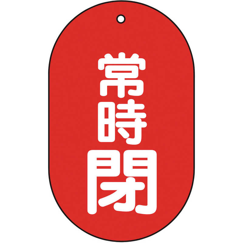 【商品解説】●裏返しになっても確認できる両面表示です。●耐水性・耐久性に優れ、屋内外での使用に適しています。【用途】・工場・建物の配管バルブに。【仕様】縦(mm):60、横(mm):38、厚み(mm):2.0、材質:再生ポリプロピレン、摘要:両面表示、表示内容:常時閉・赤地(白文字)、質量(g):194mmφ穴上部1ヵ所、両面表示【注意】●取付具は別売です。【スペック】●型式:T45112(T45112)●JANコード:4989999243987この商品は宅配便でお届けする商品です出荷可能日から最短日時でお届けします。※出荷完了次第メールをお送りします。配送サービス提供エリアを調べることができます「エリア検索」をクリックして、表示された画面にお届け先の郵便番号7桁を入力してください。ご購入可能エリア検索お買い上げ合計3,980円以上で送料無料となります。※3,980円未満の場合は、一律550円(税込)となります。●出荷可能日から最短日時でお届けします。(日時指定は出来ません。) ※お届け時に不在だった場合は、「ご不在連絡票」が投函されます。 「ご不在連絡票」に記載された宅配業者の連絡先へ、再配達のご依頼をお願いいたします。●お届けは玄関先までとなります。●宅配便でお届けする商品をご購入の場合、不用品リサイクル回収はお受けしておりません。●全て揃い次第の出荷となりますので、2種類以上、または2個以上でのご注文の場合、出荷が遅れる場合があります。詳細はこちら■商品のお届けについて商品の到着日については、出荷完了メール内のリンク(宅配業者お荷物お問い合わせサービス)にてご確認ください。詳しいお届け目安を確認する1度の注文で複数の配送先にお届けすることは出来ません。※注文時に「複数の送付先に送る」で2箇所以上への配送先を設定した場合、すべてキャンセルとさせていただきます。