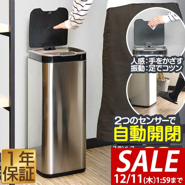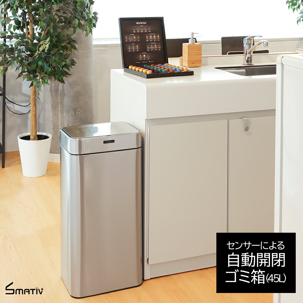 メーカー希望小売価格はメーカーサイトに基づいて掲載しています (1/ 2/ 3) <ご一読ください> 本製品に取付けられた人感センサーは、検知エリア内の温度が変化(検知)することで、自動的にONする構造で設計しております。本製品では、製造および出荷時にセンサーの反応距離・反応有無検査を全商品に対して行っておりますが、稀に下記が要因で蓋の開閉に不具合が発生する場合がございます。 【1】使用中や輸送中に激しい衝撃が加わった場合、センサーの角度が変動され、反応距離が長くなることがあります。また、人感センサーが壊れて、反応しないこともあります。 【2】本製品は普通充電器を使用せず乾電池を使用しております。標準入力電圧と電流より超えると、製品の誤動作で、作動する場合があります。 【3】本製品に使用しているセンサーは赤外線反射形です。光が乱反射して検出物体ではなく、乱反射した光を検出してしまうことで誤動作してしまうことがあります。センサー検知面に直接強い光、直射日光が当たる場所や検知エリア内に鏡、ガラス、金属板 等の反射物がある場所は特にご注意ください。 【4】人感センサーが誤作動する原因は、温度差が発生する以外に、無線等による電波障害、太陽光線等の強い光、高い熱、携帯電話の電波が影響する場合もあります。また、検知エリア内に急激な温度変化が発生する場所の場合、人がいなくてもセンサーが検知され、照明がON/OFFを繰り返す事があります。 製品の不具合に関するお問合せは当社サポートセンターまでご連絡ください。 ※その他よくあるご質問はこちら >>> ※北海道、福岡県、佐賀県、長崎県、熊本県、大分県、宮崎県、鹿児島県、沖縄県は、あす楽には対応しておりません。 [おしゃれなゴミ箱をお探しの方へ] 45L 45リットル アイアン アウトドア インテリア インテリア・寝具・収納 オート オート開閉 おしゃれ オフィス おむつ カフェ キッチン クール くずかこ くず入れ くず箱 コードレス ごみばこ ゴミ袋 ごみ袋 ゴミ袋対応 ごみ入れ ゴミ箱 ごみ箱 コンパクト シルバー シンプル スクエア スタイリッシュ スチール ステンレス スペーシー スリム センサー センサー開閉 センサー式 ダイニング ダストボックス タッチレス ニオイ におい ハンズフリー フタ ふた フタ付き ふた付き メタリック モダン リビング レストラン 隠す 衛生 屋外 蓋 蓋付き 蓋付きゴミ箱 角型 乾電池式 銀 屑入れ 見えない 光沢 四角 四角形 自動 自動で開く 自動開閉 自動開閉ゴミ箱 自動開閉式ごみ箱 手をかざす 収納 臭い 縦型 書斎 省スペース 寝室 塵箱 清潔 生ゴミ 袋 袋が見えない 袋を隠す 袋を見せない 台所 調理場 電池式 電動毎日の暮らしを、もっと快適に。シンプルで上質なデザインと機能性を両立した、ワンタッチ自動開閉センサー式ステンレス製ゴミ箱(ダストボックス)。 手をかざすだけでフタが開くハンズフリー設計で、キッチンやリビング、洗面所・トイレなど、あらゆる空間に美しく調和します。 ■ 清潔&においケア設計 密閉性の高いフタ付き構造で、生ゴミのにおいや湿気をしっかりブロック。フタ裏には消臭剤ポケットを搭載し、におい対策もばっちり。汚れや指紋が付きにくい防汚ステンレス素材を採用。お手入れ簡単で、いつでも清潔を保てます。 ■ 省スペース対応 45Lの大容量ながら、A4サイズに収まるスリム&省スペース設計。キッチン横や洗面所、トイレ、オフィスにもすっきり置けるサイズ感で、限られた空間を有効活用できます。 ■ デザイン&素材にもこだわり ボタンや取っ手のないモダンで高級感のあるデザインは、どんなインテリアにも自然にマッチ。本体は耐久性の高いステンレス製、内部上部には滑らかなプラスチック素材を採用。ゴミ袋の取り付けも簡単で、見た目すっきり・ストレスフリーな使い心地を実現しました。 ■ 利便性へのこだわり センサーが手の動きを自動感知し、フタがスムーズに開閉。両手がふさがっていても、手をかざすだけで開くハンズフリータイプだから、料理中や掃除中もストレスフリー。電池式で、コードレス設置が可能。キッチン・リビング・オフィスなど、場所を選ばず清潔な空間を保てます。 どんなインテリアにも馴染むスタイリッシュなステンレスデザインは、家庭用から業務用まで幅広く活躍。キッチンでは生ゴミ処理用に、リビングでは目立たないスマートなごみ箱として。洗面所やトイレでは衛生的な自動開閉タイプとして便利に使えます。 また、家庭用・業務用・オフィス用・店舗用の屋内ゴミ箱としてもおすすめ。キッチンやリビング、洗面所・トイレはもちろん、クリニックや受付など清潔感を求める空間にも最適です。見た目の清潔感と機能性を両立した設計で、あらゆる空間に上質な印象をプラスします。 詳細情報 容量 約45リットル 重量 約4.8kg サイズ (外寸)約高さ64.7cm×奥行き25.0cm×幅33.0cm 電源 単三電池×4(別売) 備考 本商品には電池は付属しておりません。 -