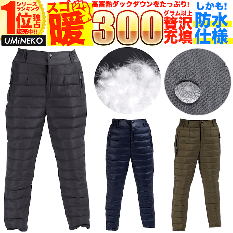 ダウンパンツ 防水 メンズ レディース 男女兼用 登山 防寒パンツ 防寒 地震 防災 災害 対策 暖かい レインパンツ アウター ダウン パンツ アウトドア フィッシング 釣り 雪 雪かき 車中泊 野外 バイク キャンプ グッズ インナー 冬 ウミネコ スゴ暖 ブランド
