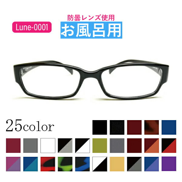 お風呂用くもりにくいメガネ 選べる9度数 Lune-0001 レンズ左右度数選択可能 お風呂 入浴用 温泉 メガネのくもりを防止! 防曇レンズ使用 サウナ くもり止め 近視用 度付き 曇り お風呂用メガネ お風呂メガネ