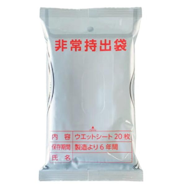ウェットティッシュ 20枚入り 拭く ウェット 携帯 3層構造フィルム パッケージ 5年保証 長期保存可 耐光性 防湿性 非常時 避難 災害 震災