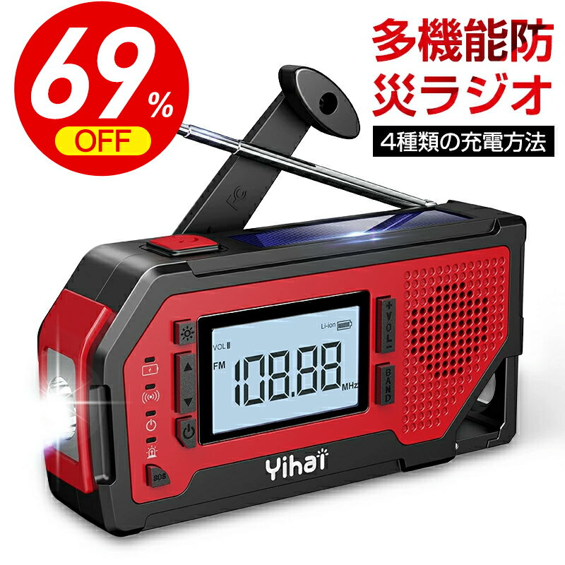 楽天1位\69%OFF!スーパーSALE/ 防災ラジオ ラジオ 多機能 YIHAI ポータブルラジオ 防災グッズ AM/FMラジオ ワイドFM対応 携帯ラジオ LEDライト スマホ充電 SOSアラーム 停電対策 防水 IPX3 リチウム電池 USB充電 お歳暮 ギフト