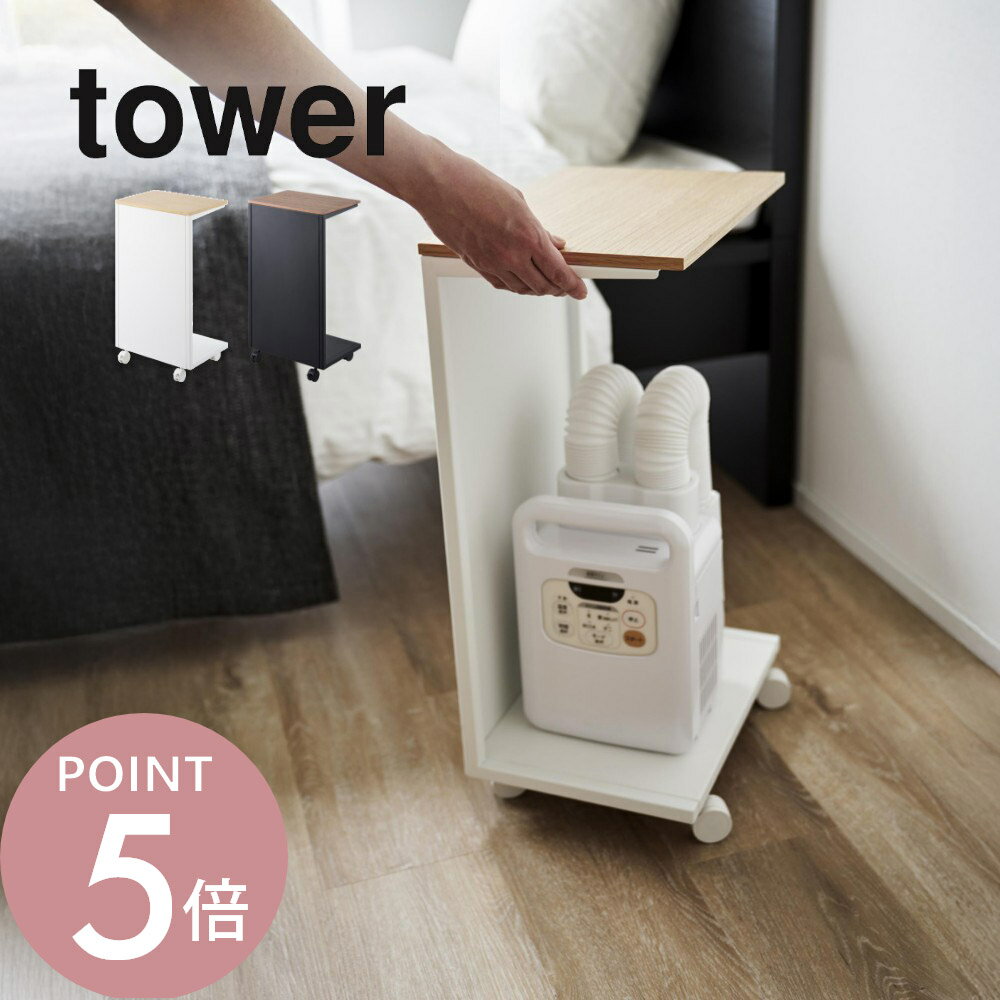 tower 〔 山崎実業 キャスター付き 目隠し布団乾燥機スタンド タワー 〕 布団乾燥機収納 収納 キャスター付き 家電収納 省スペース ナイトスタンド スタンド 目隠し収納 サイドテーブル シンプル 公式 ホワイト ブラック 白 黒 1959 1960 YAMAZAKI