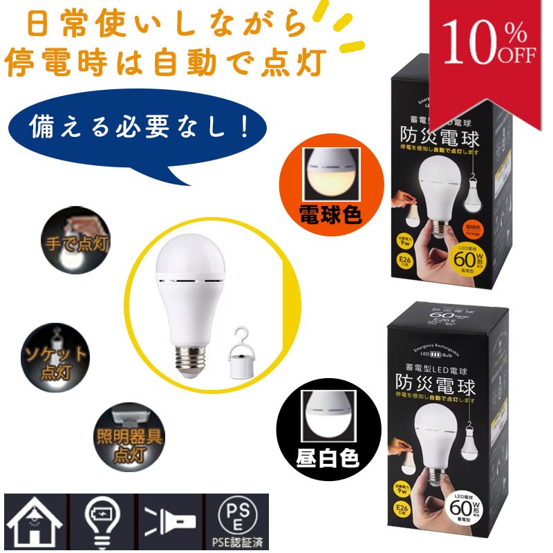 \10%OFF スーパーセール/防災 電球 LED電球 LED 充電式 蓄電 ランタン ライト 防災 防災グッズ バッテリー内蔵 E26 60W 相当 昼白色 懐中電灯 地震対策 停電対策 台風 かりはな製作所 ★