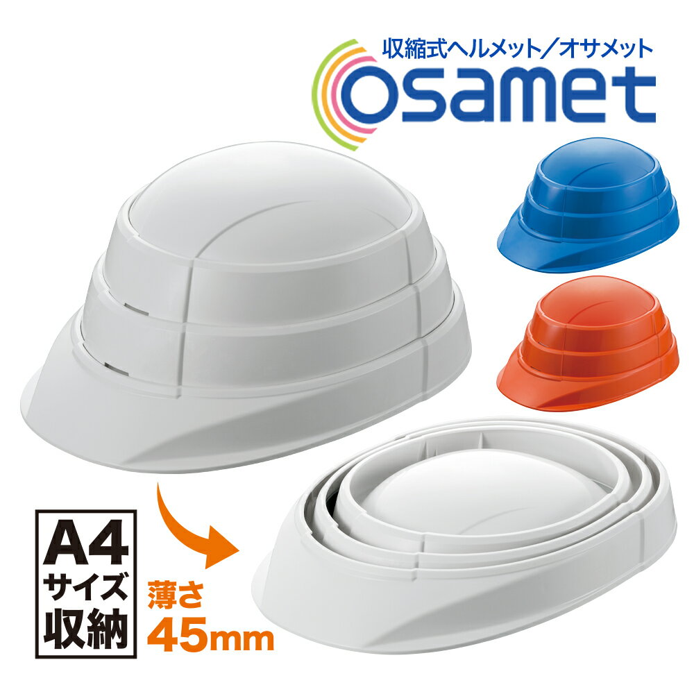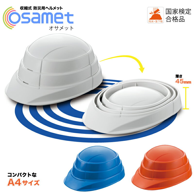 防災ヘルメット 折りたたみヘルメット オサメット 防災用品 災害備品 非常用 A4サイズ収納 避難 飛来 落下 安全 国家検定品 3色 オレンジ ホワイト ブルー OSAMET 加賀産業 KGO-1 防災グッズ 地震対策 最薄収納 GOOD DESIGN AWARD 2018