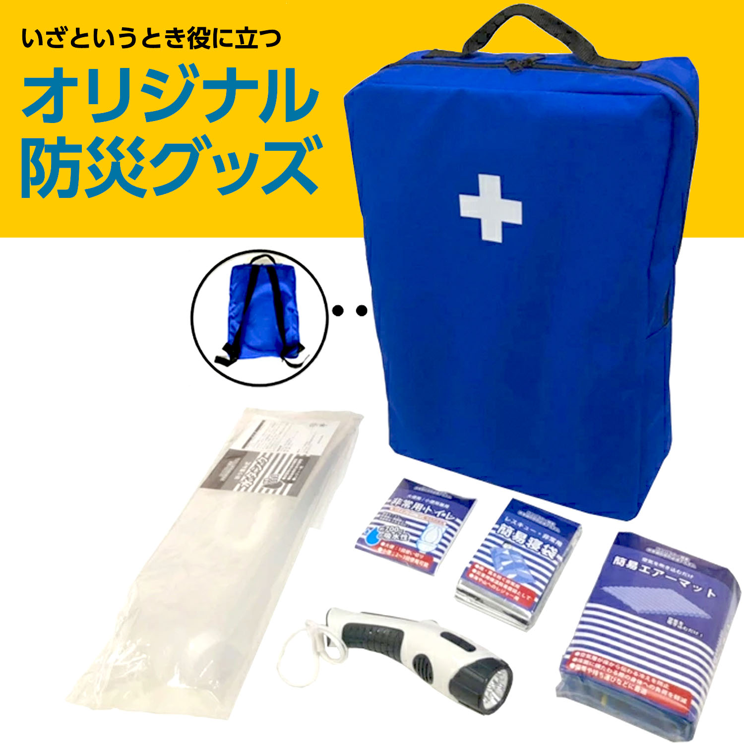 【LIFELUCK限定6点セット】オリジナル防災セット //防災グッズ 防災セット ハンディライト チャージングライト 非常用ライト ラジオ 簡易トイレ 非常用トイレ 簡易エアーマット 給水ヤンク 水タンク 折りたたみ リュック
