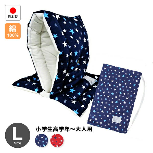 防災ずきん 防災頭巾 専用カバー付 スター柄 日本製(小学生高学年から大人まで)46×30cmスター柄 Lサイズ 防災クッション(約30×46cm) 防災クッション 小学生 大人 防災グッズ
